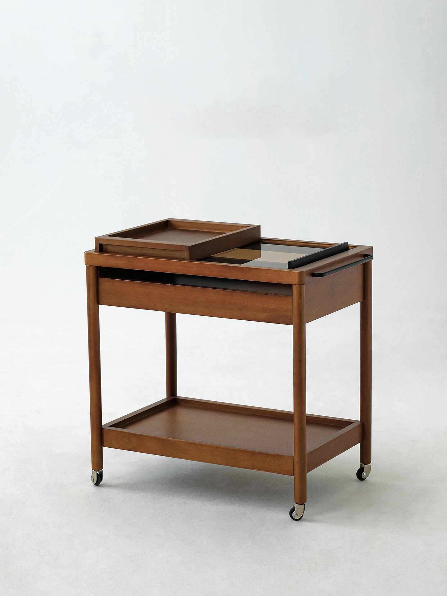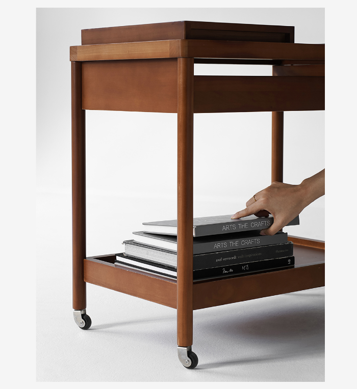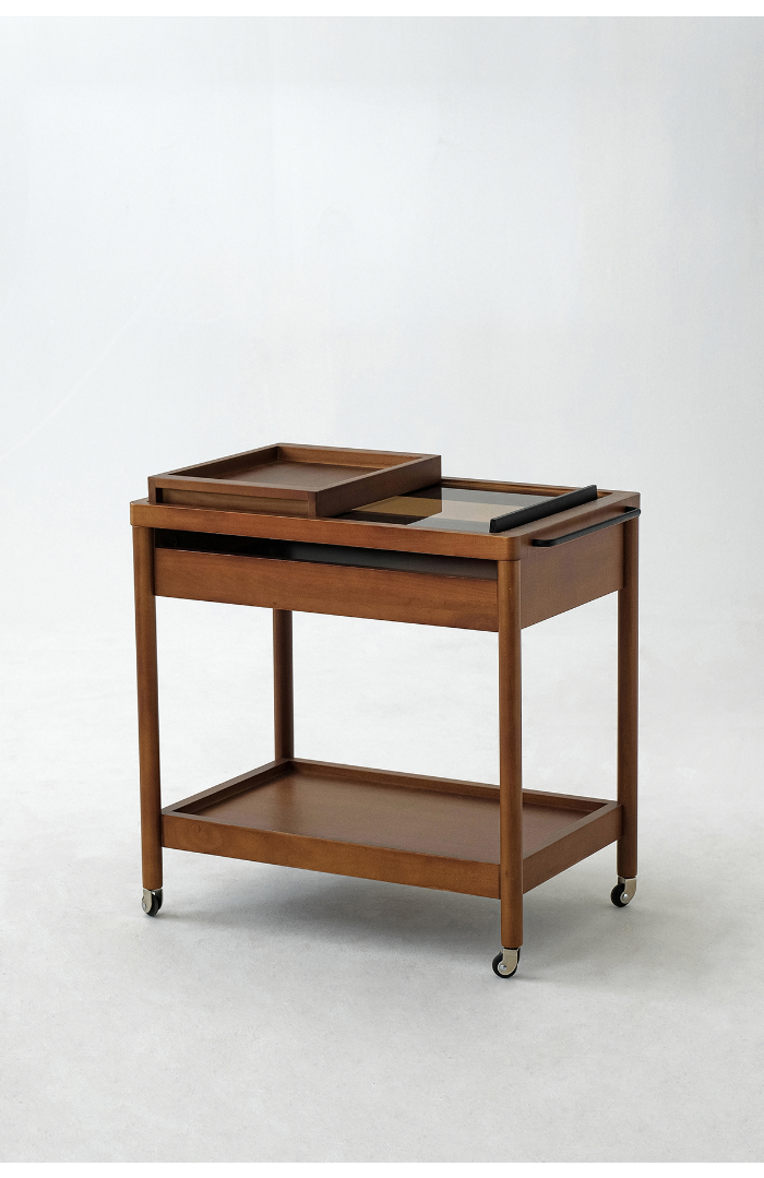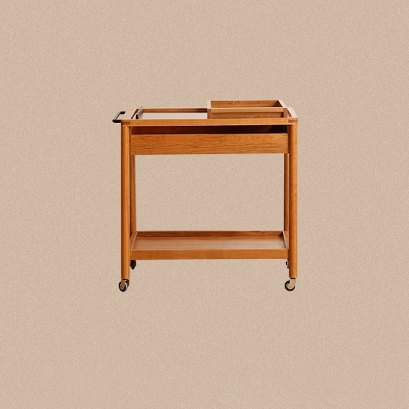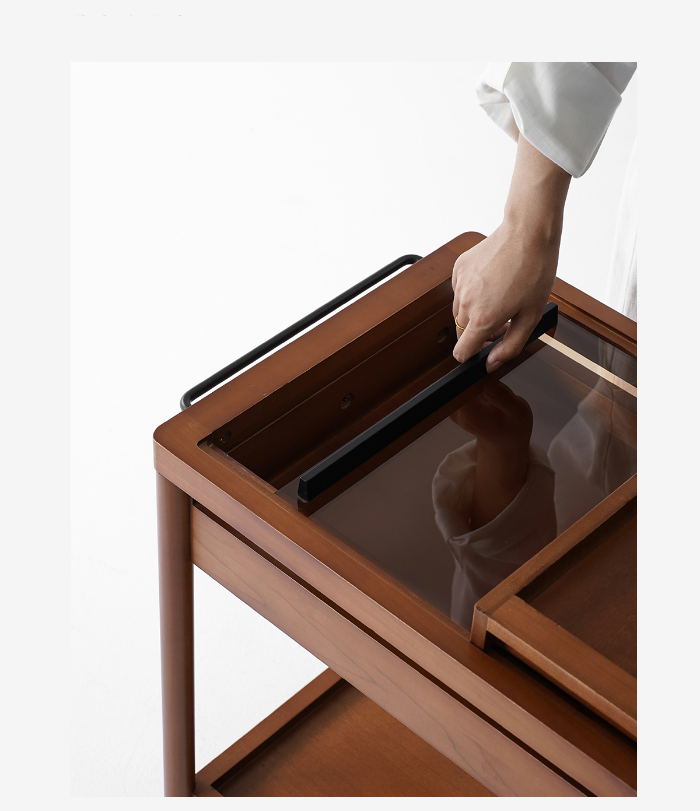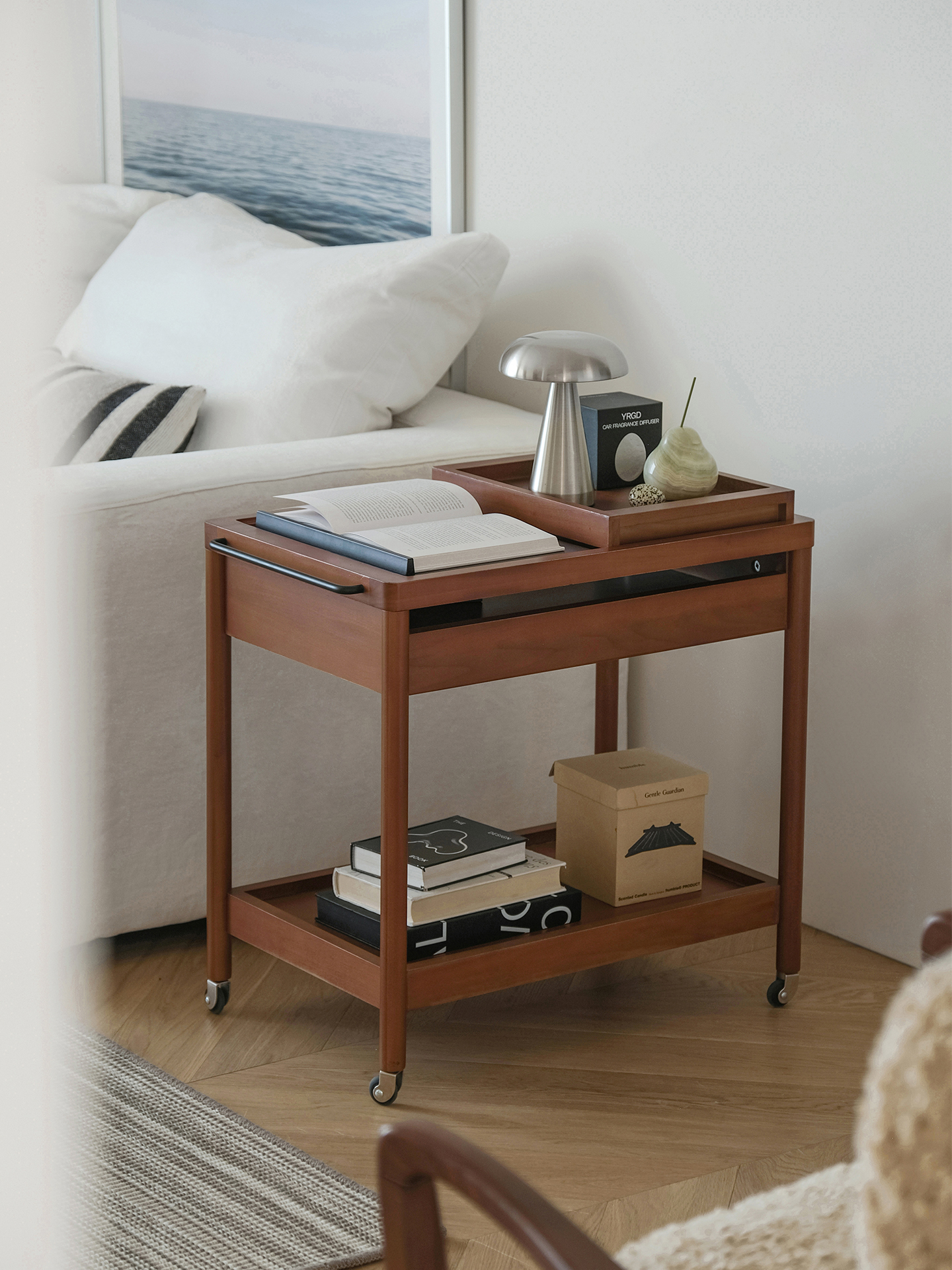 • 商品細節 : 這款小推車採用優質實木打造,結合中古與北歐設計風格。配備靜音萬向輪,移動靈活且具備兩層大容量收納空間,適合作為客廳邊幾或沙發旁置物架使用。