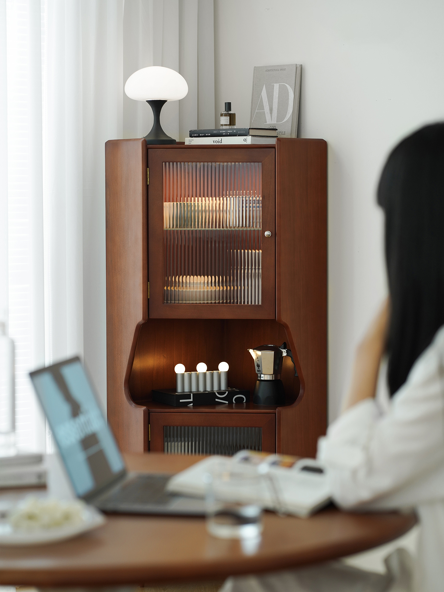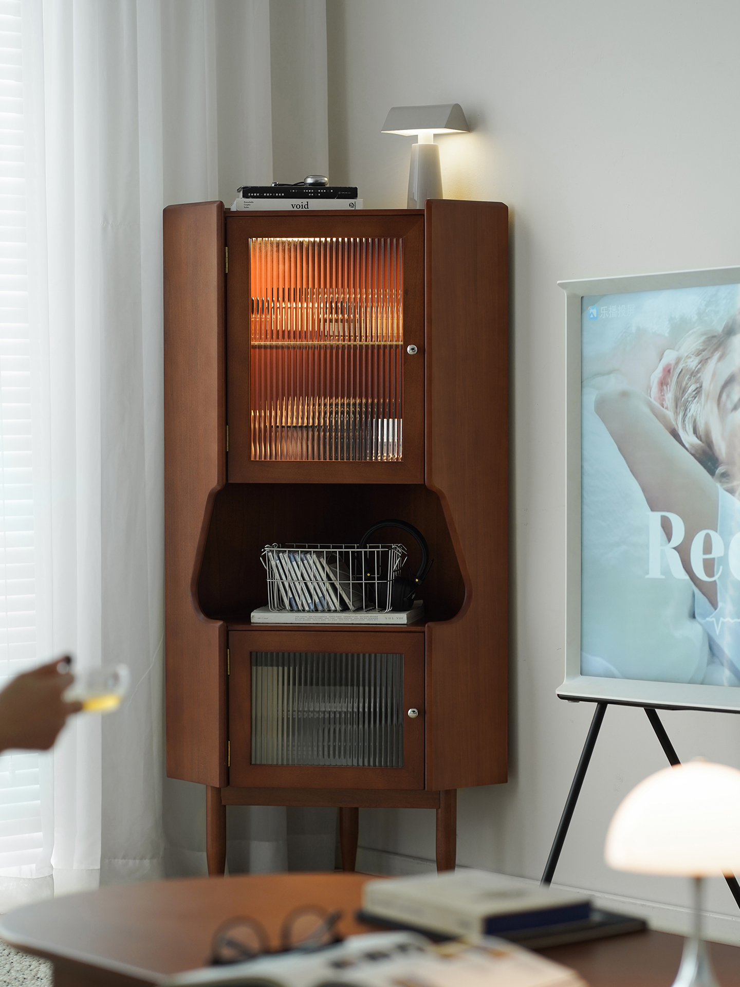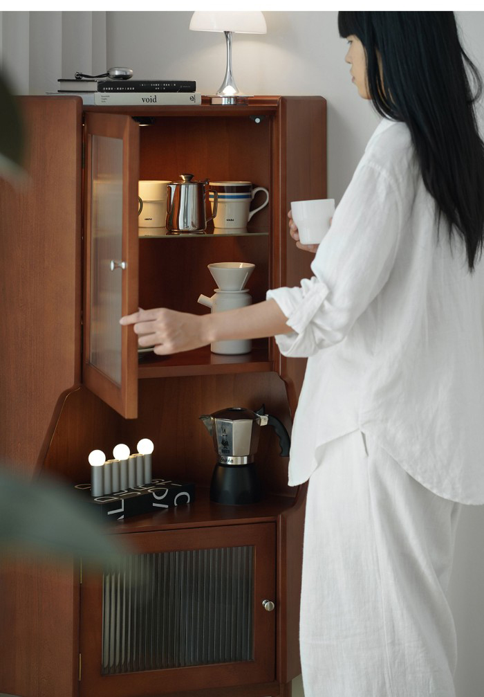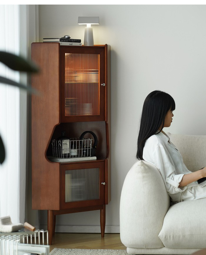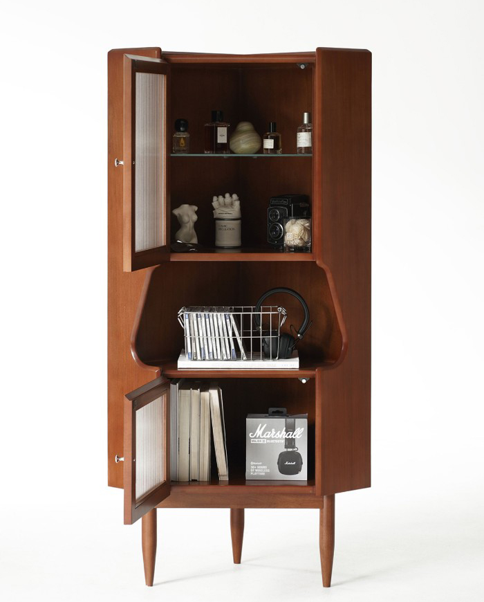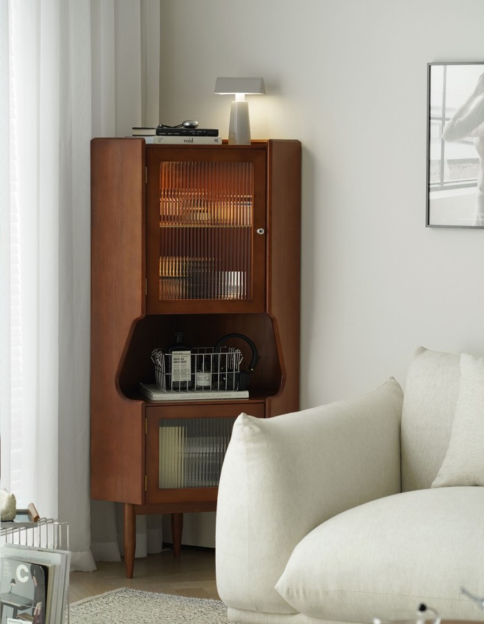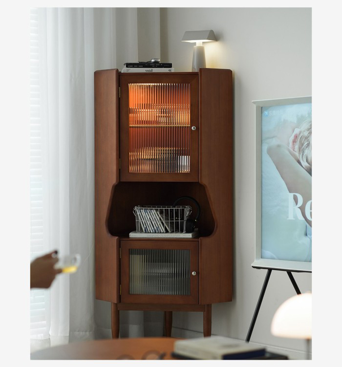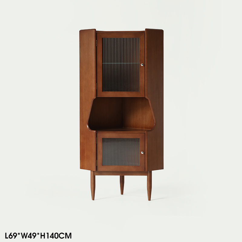 - 商品細節 : 此款中古風角櫃採用全實木打造,三角結構完美契合角落空間,復古柚木色漆面均勻,兼具展示與收納功能,是提升居家氛圍的藝術單品。
