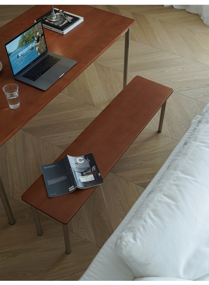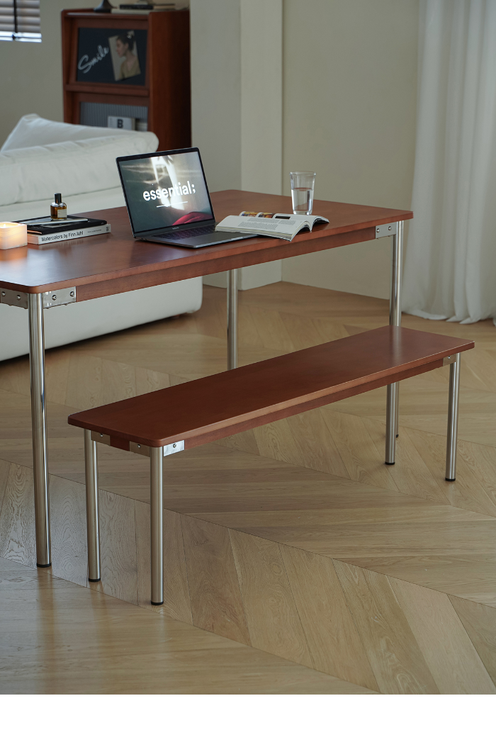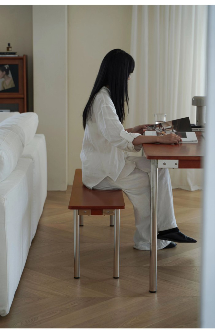 • 商品細節 : 這款長凳結合了經典的中古柚木色與耐用的鉚釘工藝,展現濃厚復古工業美學。實木座面質地溫潤,搭配不鏽鋼結構,穩固耐用且適配多種家居場景。